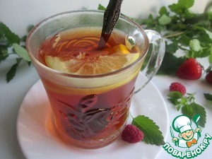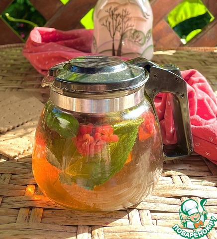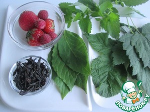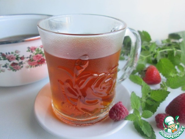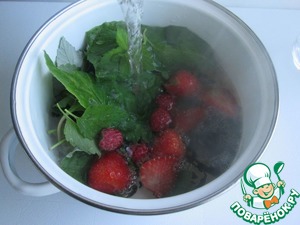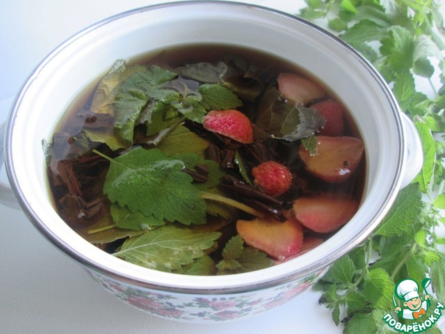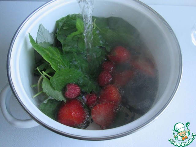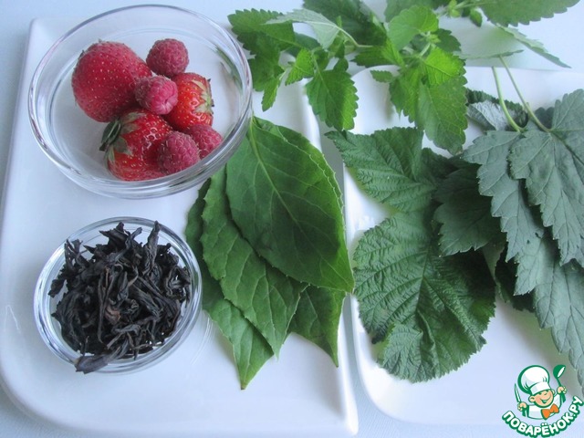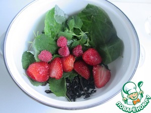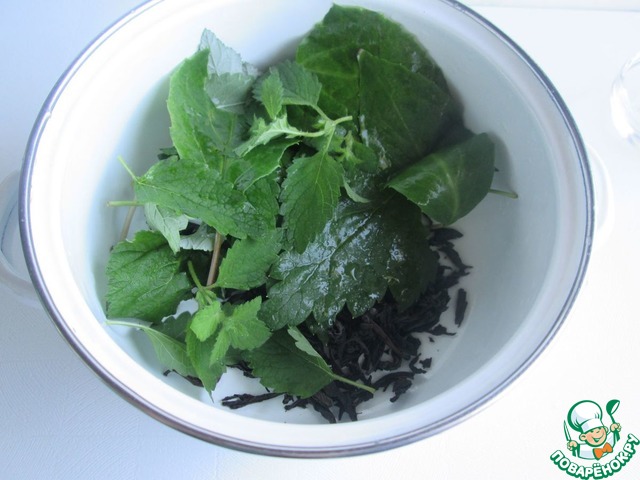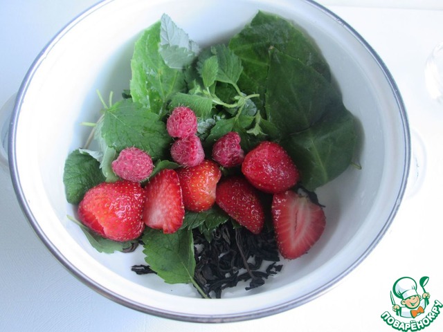 Подготовить заварку. Я взяла чёрный крупнолистовой цейлонский чай. Листочки и ягоды вымыть. Если нет мелиссы, то подойдёт мята (количество - по вкусу).