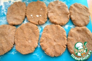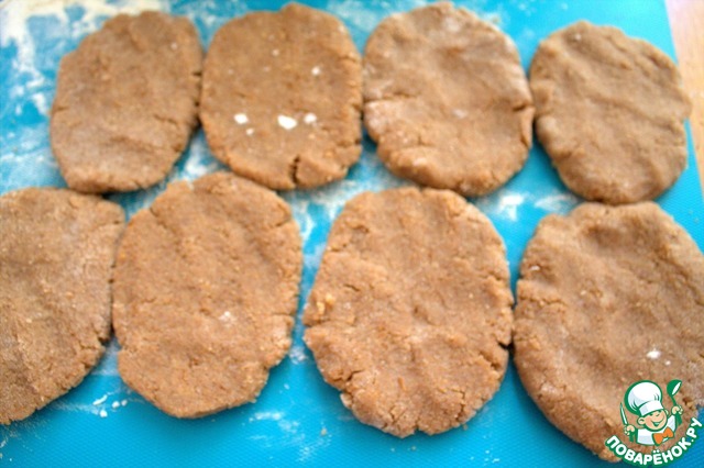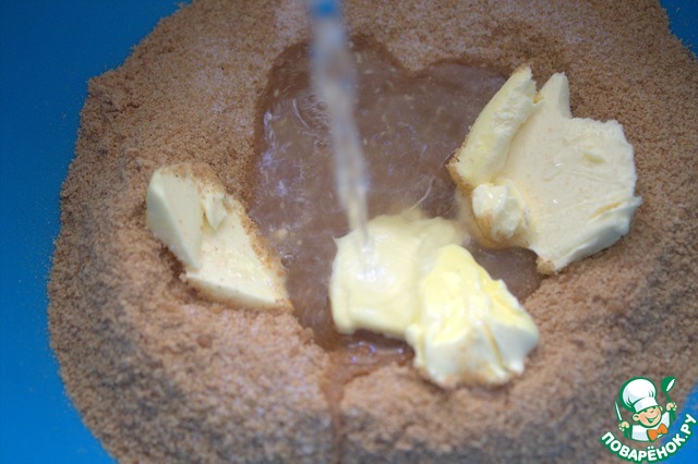 В гречневую муку (муку я сделала из гречневых хлопьев) добавить мягкое масло, соль и влить тёплую воду-стакан.