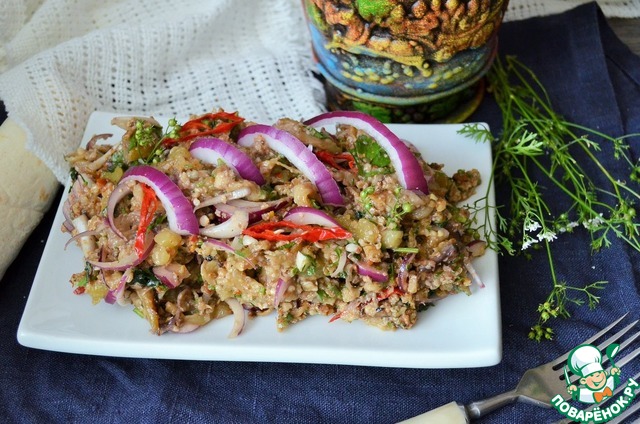 [+5]Овощи получились острые, колоритные и очень ароматные! Перец и баклажаны запекала в духовке, из зелени только зелёный лук, остальное всё по рецепту.