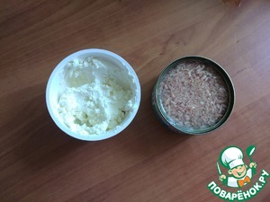 Готовим рикотту и тунец. Лучше взять тунец в собственном соку. Салат будет диетичней. Откидываем содержимое банки на сито и даём жидкости стечь, помогая (отжимая) ложкой. Нам не нужна жидкость в салате.
