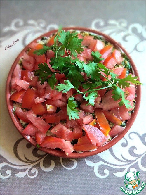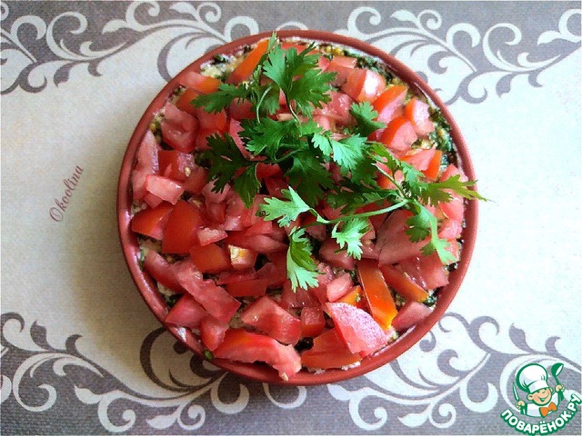 Накрываем крышкой и оставляем промариноваться кинзу минут 5-10.