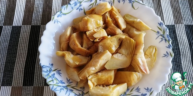 Сцеживаем от масла артишоки. В оригинале свежие, но сейчас, увы, не сезон.