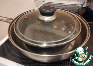 Манипуляции со сковородой не поняла совсем, в чём тут фишка-то: вроде в сковороду Вы воды не наливали, водяной бани нет, зачем тогда она нужна?