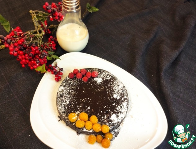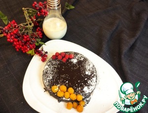 • Корж готов, осталось полить глазурью, красить ягодами и посыпать сахарной пудрой!