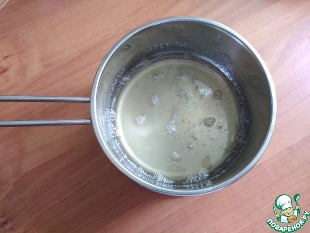 Сварить сахарный сироп: довести сахар с водой до кипения и варить 3 мин. Сироп должен кипеть крупными пузырями. Снять с огня.