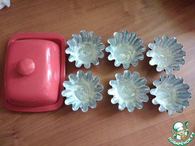 - Масло сливочное (смазать формы 8 шт) — 30 г