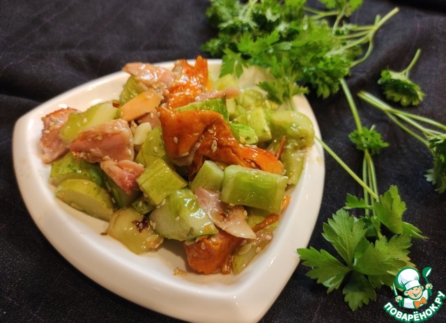 Рецепт «Битые огурцы с копченой курицей по-корейски»: