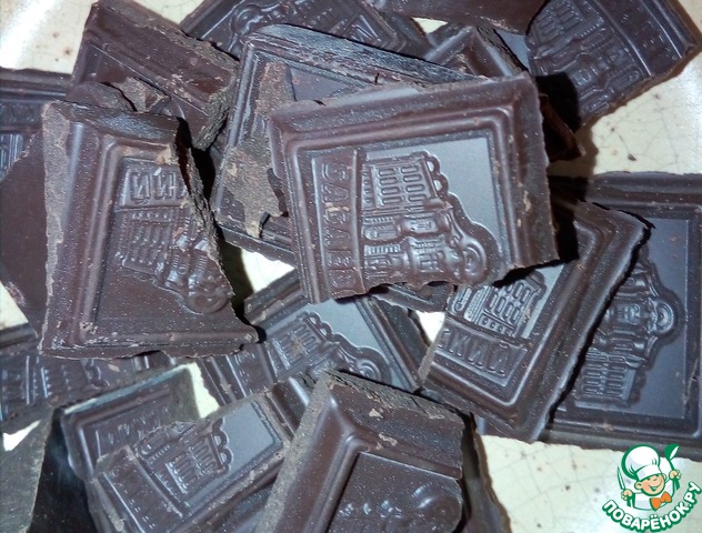 - Шоколад темный (их них 150 гр. в основу и 50 гр. для обмазывания тортика) — 200 г