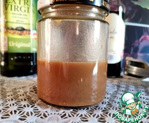 Следом влить оливковое масло и бальзамический уксус. Закрыть баночку крышкой и несколько раз энергично встряхнуть.