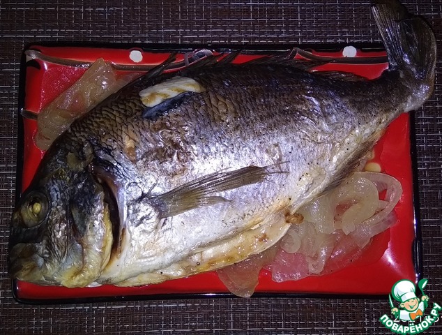 Дорадо в духовке по этому рецепту готовится на луковой подушке. Получается рыба очень ароматной и вкусной. Кстати, по такому же принципу можно приготовить скумбрию или любую другую речную или морскую рыбу.