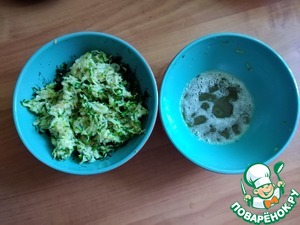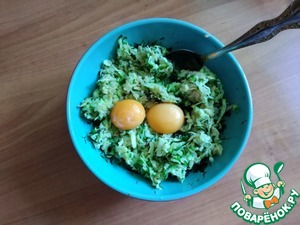 Зелень мелко порезать и так же - репчатый лук. Не принципиально какую брать зелень. Можно добавить и мяту, и шпинат. Картофель и цукини (кабачок) натереть на тёрке.