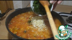 Потом добавляем измельченный чеснок и петрушку, ещё потушим 15 минут.