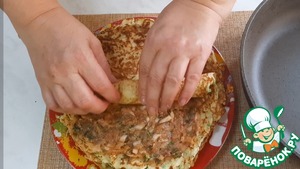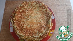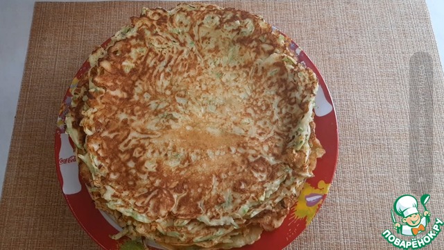 [+5]Блинчики у меня не очень тонкие получились. Кабачка было в чистом виде 600 грамм, поэтому добавила +1 яйцо и 0.5л муки. Из этого количества теста вышло 7 блинов .