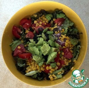 Рецепт «Краснолистовой салат с помидорами и кукурузой»: