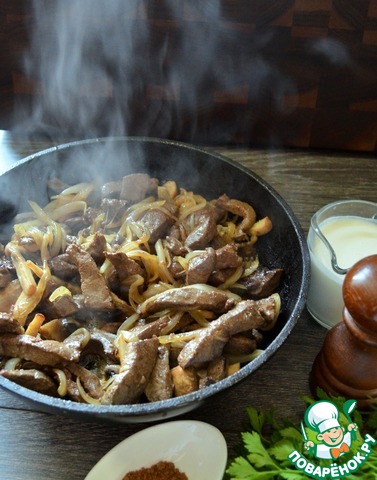 Рецепт: Говяжья печень в сливочном соусе по-французски Рецепт: Говяжья печень в сливочном соусе по-французски