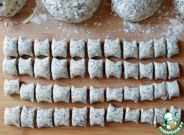 Противень застелить бумагой для выпечки и смазать растительным маслом. Разложить подушечки так, чтобы они не соприкасались друг с другом.