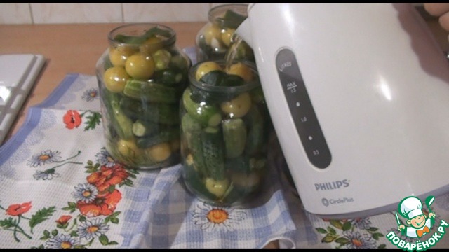 Заливаем кипящим маринадом, закатываем крышкой. Переворачиваем банки, укутываем пледом и оставляем до полного остывания.