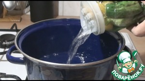 Сливаем воду, добавляем соль, сахар, кипятим маринад