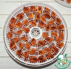 Сушить в электросушилке при температурном режиме 55°С-65°С (среднее время сушки: 12-14 часов) до полного высыхания. Процесс считается завершенным, когда абрикосы утрачивают липкость.