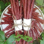 Кабаносси (cabanossi) - это длинные тонкие колбаски родом из Польши, которые готовятся из смеси постной и жирной свинины. Название происходит от заимствованного из тюркских языков слова «кабан», под которым в Польше подразумевалось мясо молодой свиньи, откармливаемой в основном картофелем. Рецепт, который я хочу вам сегодня предложить, конечно же, не настоящий, но я узнала о нем много лет назад от подруги-польки и теперь постоянно им пользуюсь. Готовятся домашние "А-ля Кабанносси" очень просто, причем не только из свинины, а по вкусу они чем-то напоминают джерки.