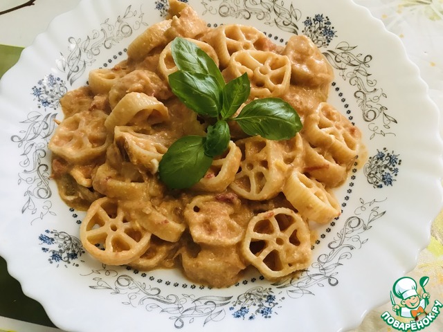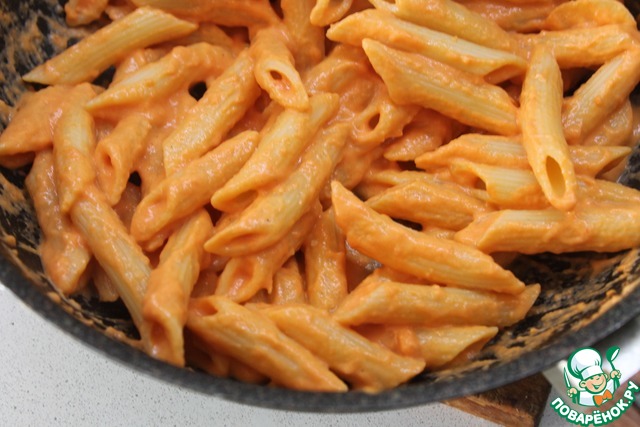 . Такой вариант пасты даже не нуждается в мясном дополнении, настолько гармоничный и самодостаточный вкус у готового блюда. Кроме того крем-соус из болгарского перца вкусен и сам по себе, его можно есть просто ложкой