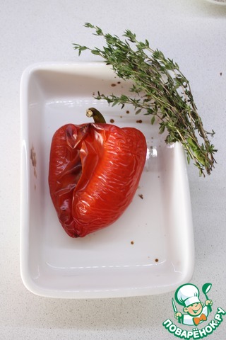 Аккуратно почистить перец от кожицы и семян. Получившийся сок не выливать. Добавить к подготовленному перцу рикотту, чайную ложку оливкового масла, посолить и поперчить, влить сок. Взбить всё блендером до состояния крема.