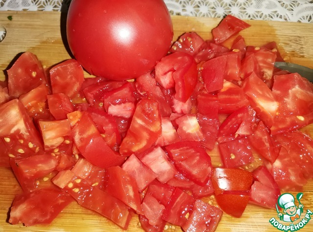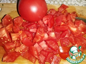 Помидоры тоже нарезать крупными кусочками.