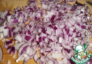 Красный лук нарезать мелкими кубиками.