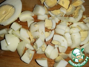 Яйца нарезать крупными кубиками.