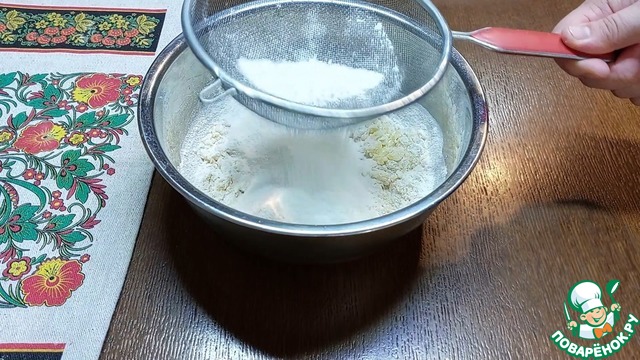 180 г муки с разрыхлителем (5 г) порционно просеиваем в желтковую массу и замешиваем тесто. Если оно покажется Вам суховатым, добавьте 1-2 ст. л. воды. Собираем тесто в шар, оборачиваем пищевой плёнкой и отправляем в холодильник. Займёмся пока ягодной начинкой.