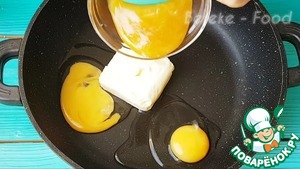 В кастрюльку или сковороду кладем сливочное масло, яйца, соль, мед и ставим на водяную баню на средний огонь все хорошо перемешиваем периодический.