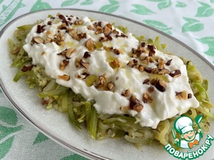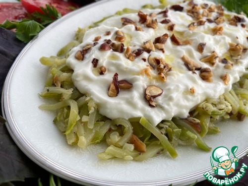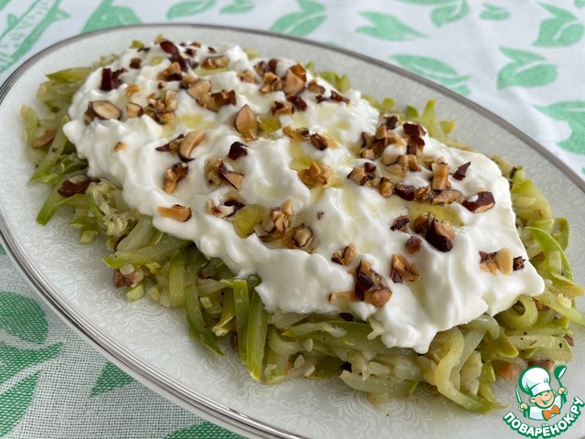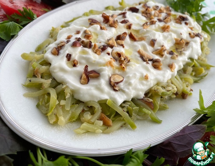 Натертый соломкой и обжаренный с миндалем кабачок в сочетании с чесноком и йогуртом образует аппетитную турецкую закуску «Бадемли кабак». Несмотря на то, что все ингредиенты простые и процесс приготовления занимает 10 минут, закуска получается вкусной и эффектной.