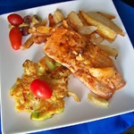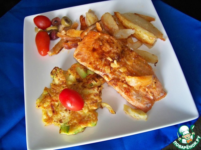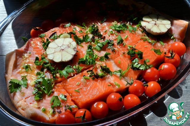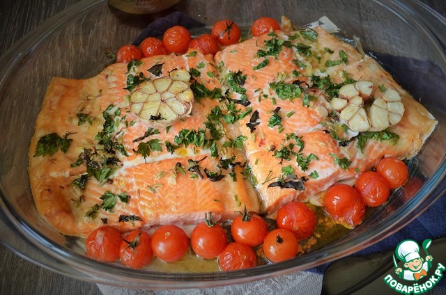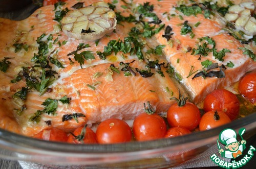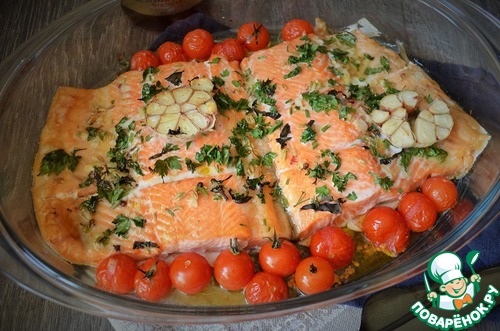 Фотки роскошные: рыбка аппетитная красавица, помидорки как бусины - нарядно. И вкусно!