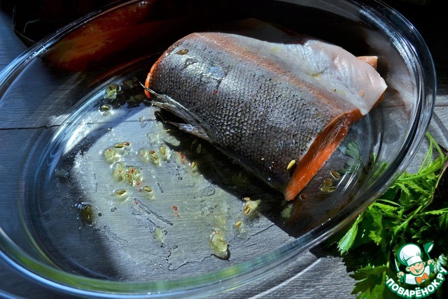 Простота приготовления, минимум продуктов и на Вашем столе праздничное рыбное блюдо. Рекомендую.