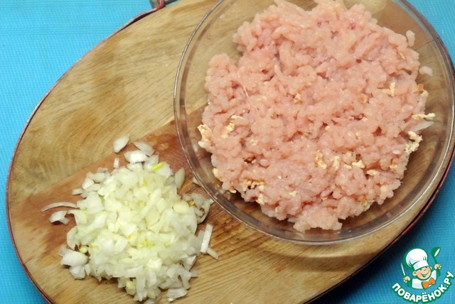 Куриное филе прокрутить через мясорубку. Лук мелко нарезать.