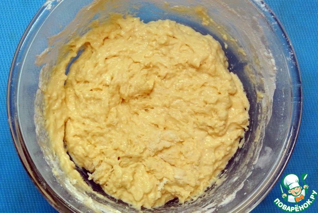 Всыпать муку. Размешать до густоты сметаны. Можно добавить 100 грамм тертого сыра.