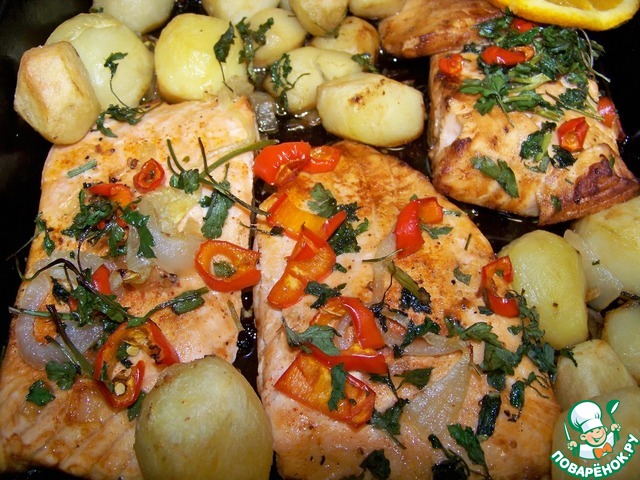 Простой, быстрый рецепт приготовления семги с овощами в духовке.