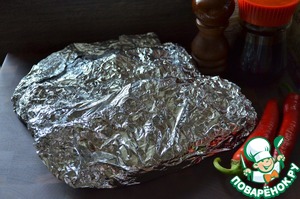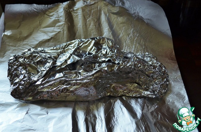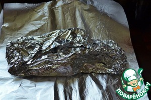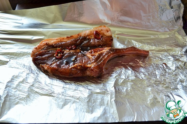 Духовку включить на разогрев. Каждый стейк поместить на лист фольги, полить 1/3 оставшегося маринада и обернуть.