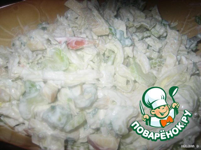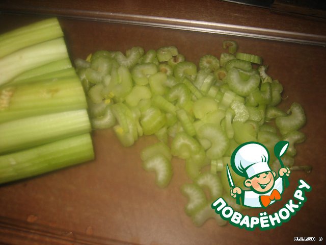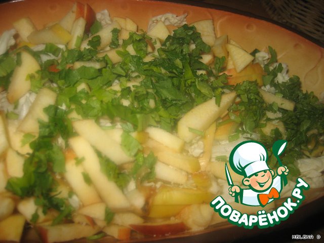 измельчаем стебель сельдерея, кит.капусту, яблоко и зелень