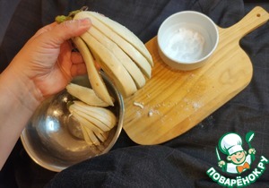 • Обваливаем в соли, просаливаем каждый фрагмент и убираем на 20 минут.
