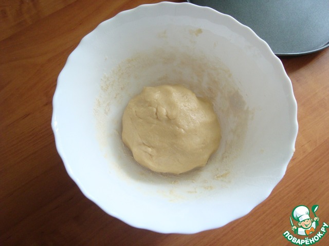 Далее замешиваем тесто руками и скатываем в шар. Заворачиваем массу в пищевую пленку и отправляем в морозилку минут на 30.