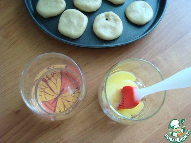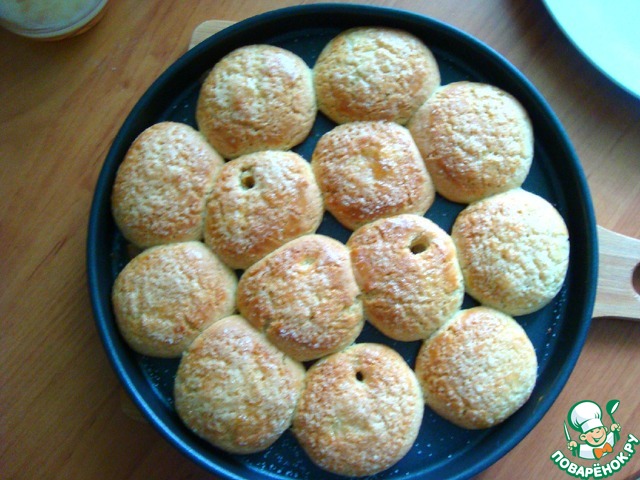 Смазываем верх желтком и присыпаем сахаром. Ставим в духовку при т-180 С на 8-10 минут. Ориентируйтесь на свою духовку.