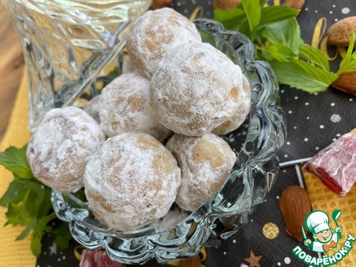 - Сахарная пудра (половина в тесто и половина на обсыпку) — 1 стак.