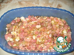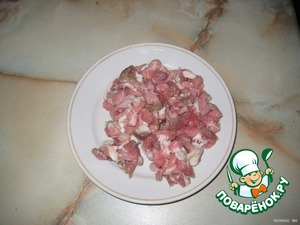 Мясо нарезать на мелкие кусочки