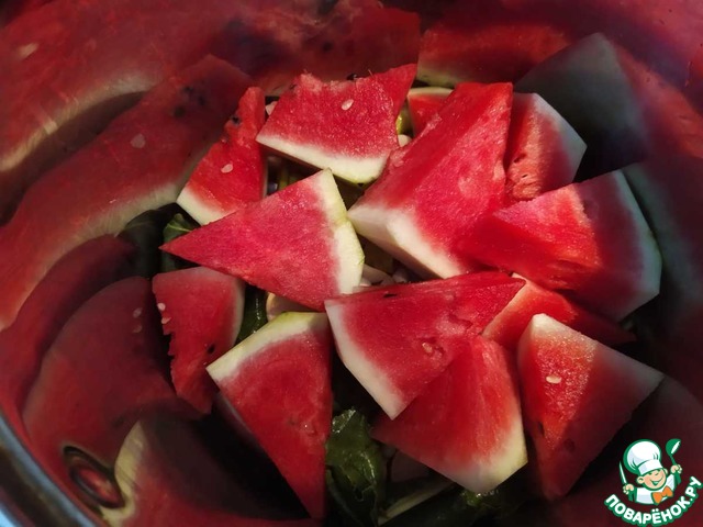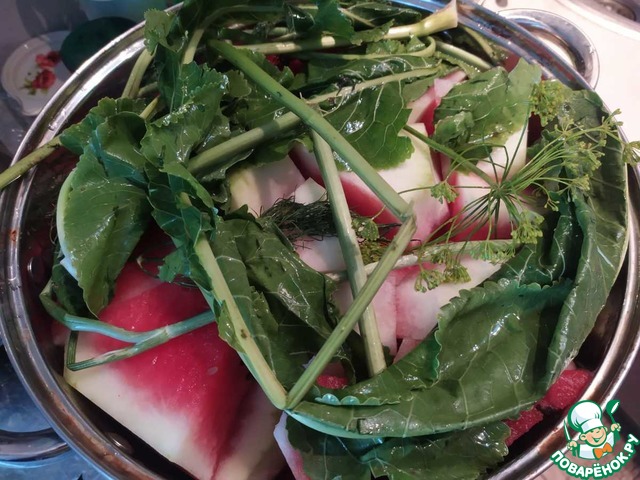 В этот раз я купила такой арбуз весом 10 кг, абсолютно спелый. Последнее время я ну никак не попадаю на розовые невкусные для еды арбузы, хотя для квашения они подходят идеально. Для квашения арбуза такого размера я использовала кастрюлю объемом 12 литров, хотя идеально подошла бы 15-литровая