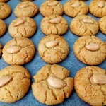 Миндаль залить кипятком и оставить на 5-7 мин., затем слить воду и очистить миндаль от кожуры. Сверху на шарики разложить очищенный миндаль. У меня получилось 27 штучек.