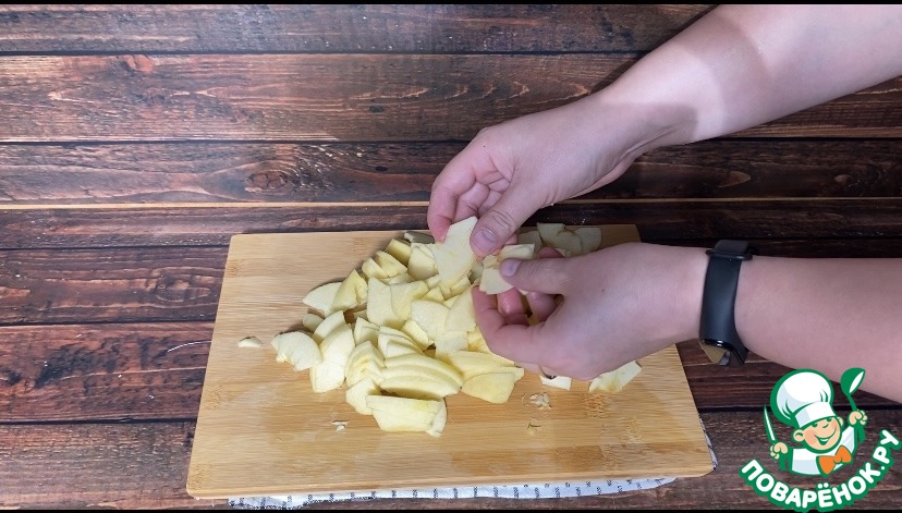 Яблоки очищаю от кожуры, вырезаю сердцевину и нарезаю на небольшие дольки.