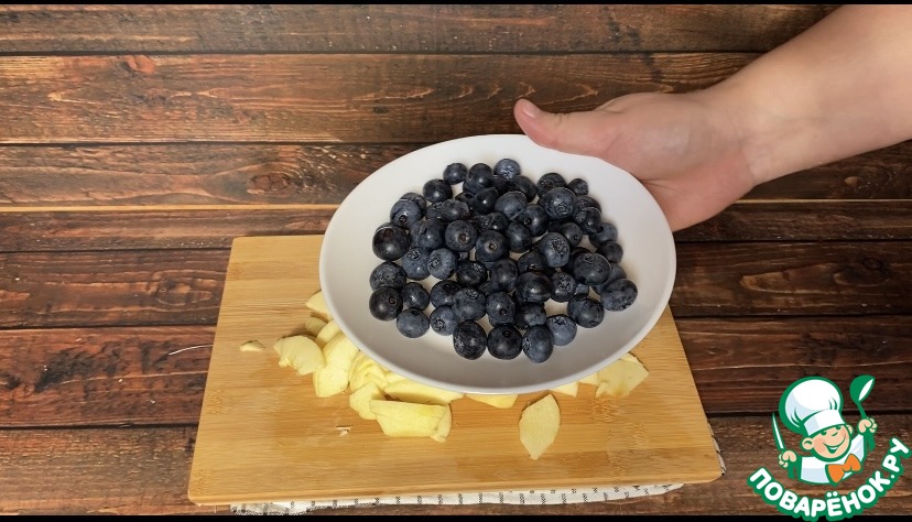 Сначала предлагаю подготовить яблоки и голубику.