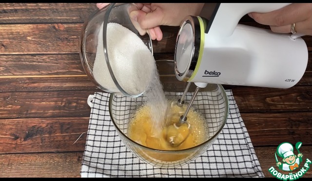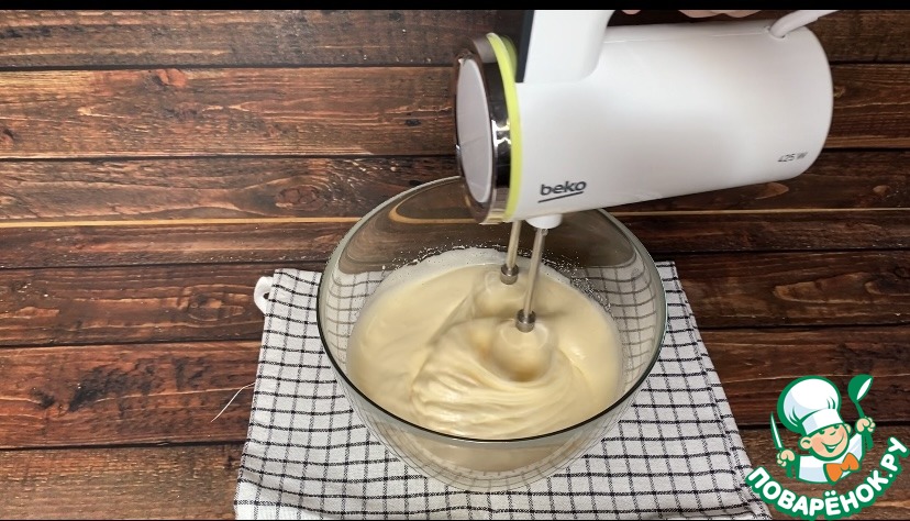 Взбиваю до светлой, пышной массы, около 8 минут.