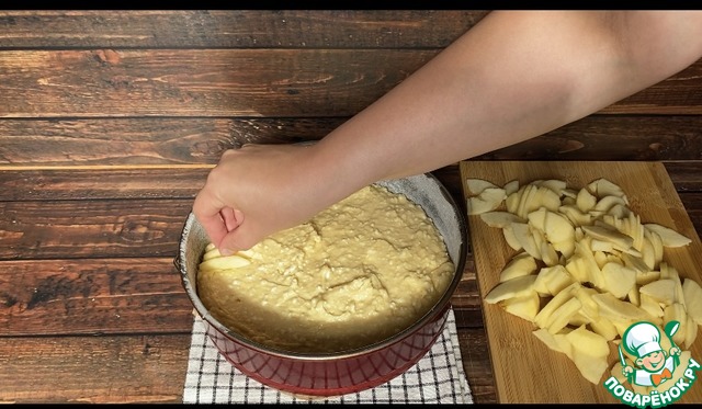 Яблоки можно выкладывать как вам нравится, можно даже нарезать кубиками и добавить в тесто.